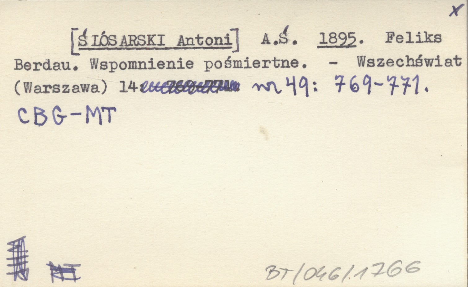 A. Ś. [ŚLÓSARSKI Antoni] 1895 Feliks Berdau. Wspomnienie pośmiertne.
