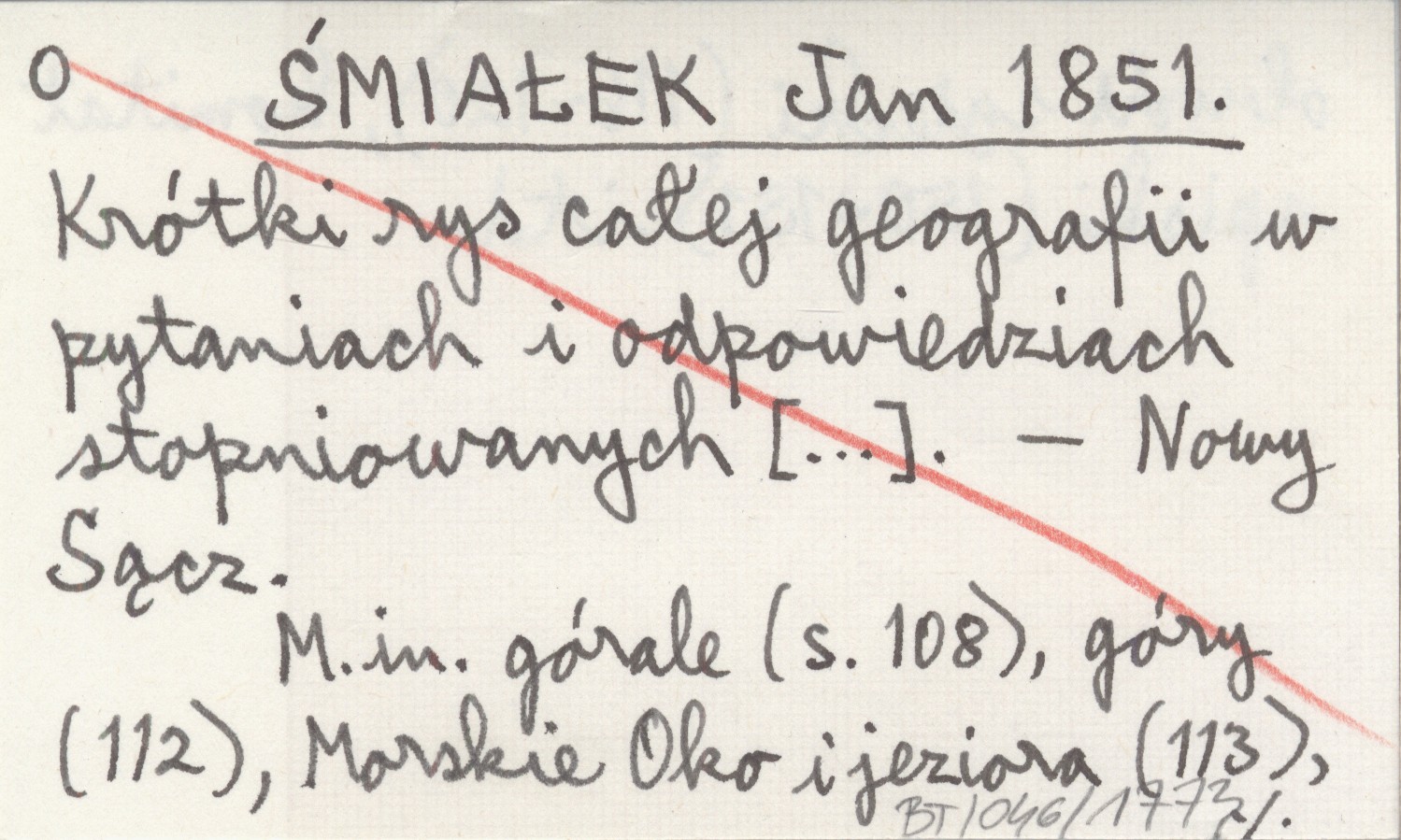 ŚMIAŁEK Jan 1851 Krótki rys całej geografii w pytaniach i odpowiedziach stopniowanych [...].