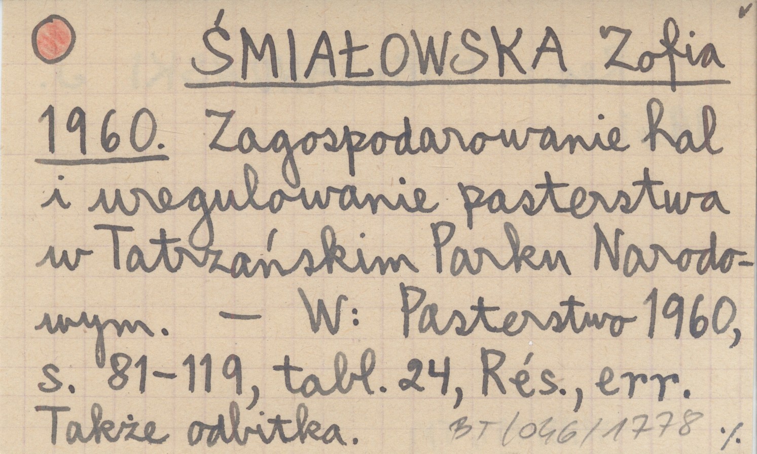 Pasterstwo 1960 , S. 81-119, 24 k., Rés., err. Także odbitka. REC: FABIJANOWSKI J. 1961