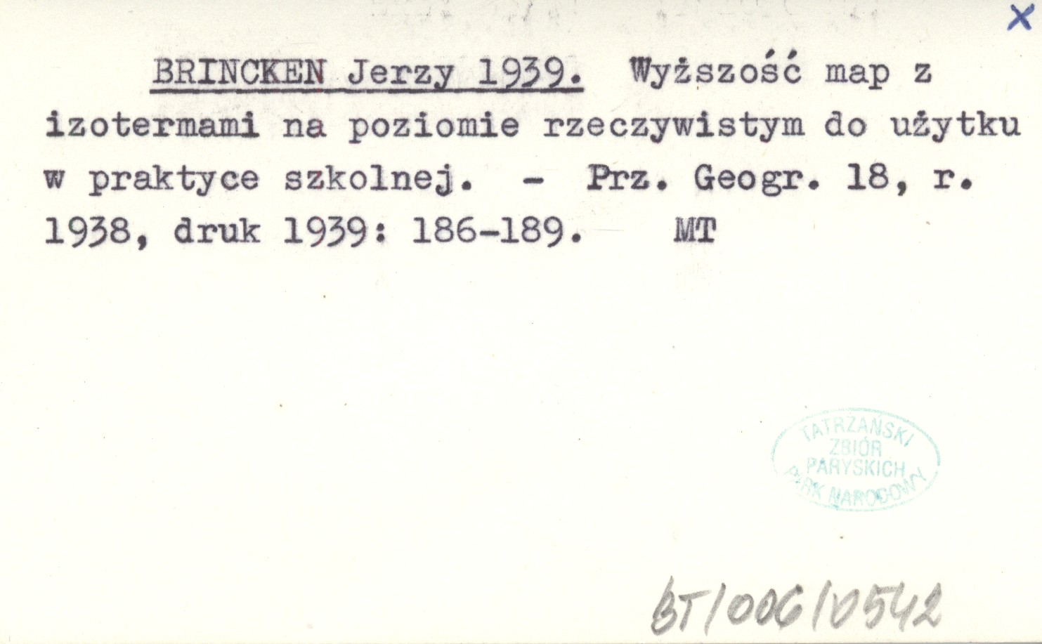 BRINCKEN Jerzy 1939 Wyższość map z izotermami na poziomie rzeczywistym do użytku w praktyce szkolnej.