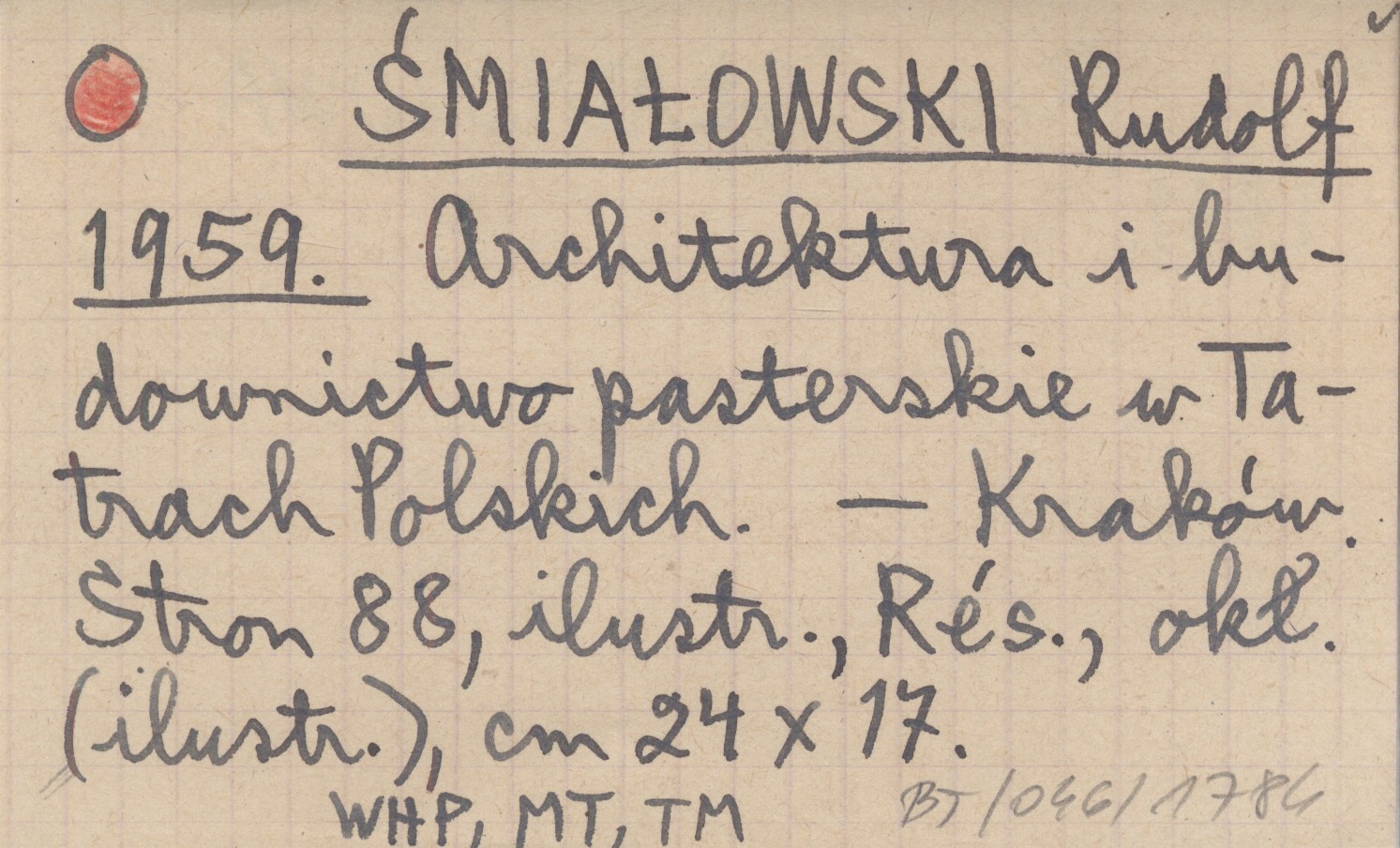 ŚMIAŁOWSKI Rudolf 1959 Architektura i budownictwo pasterskie w Tatrach Polskich.