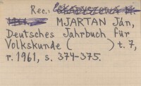 Kraków , 88 s., il., Rés., okł. (il.), 24x17 cm. REC: GŁADYSZOWA M. 1961 ; MJARTAN Ján, Deutsches Jahrbuch für Volkskunde t. 7 (1961): 374-375 ;