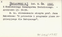 Inż. E. ŚM. [ŚMIAŁOWSKI E.] 1912 Z Krakowskiego Towarzystwa Technicznego.