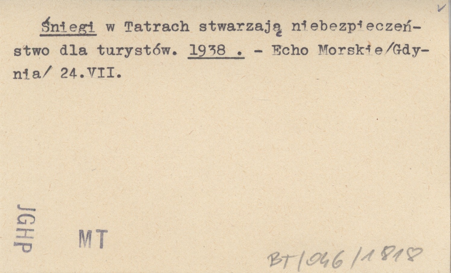 Śniegi w Tatrach stwarzają niebezpieczeństwo dla turystów. 1938