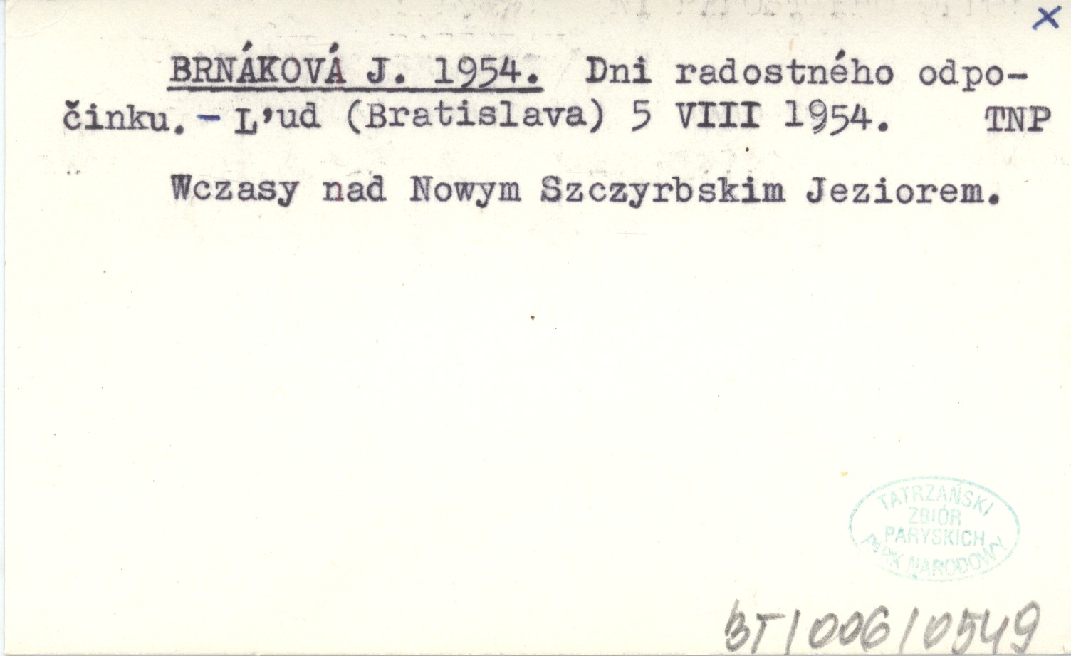 Ľud (Bratislava) , 5 VIII 1954. Wczasy nad Nowym Szczyrbskim Jeziorem.