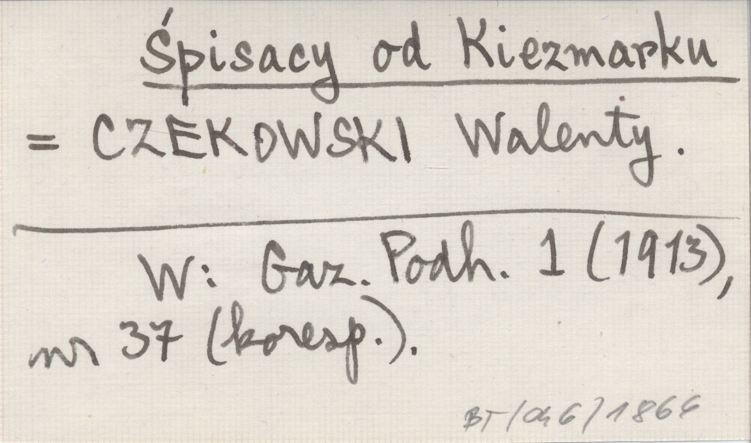 Śpisacy od Kiezmarku CZEKOWSKI Walenty Gazeta Podhalańska 1 (1913), nr 37 (koresp.).