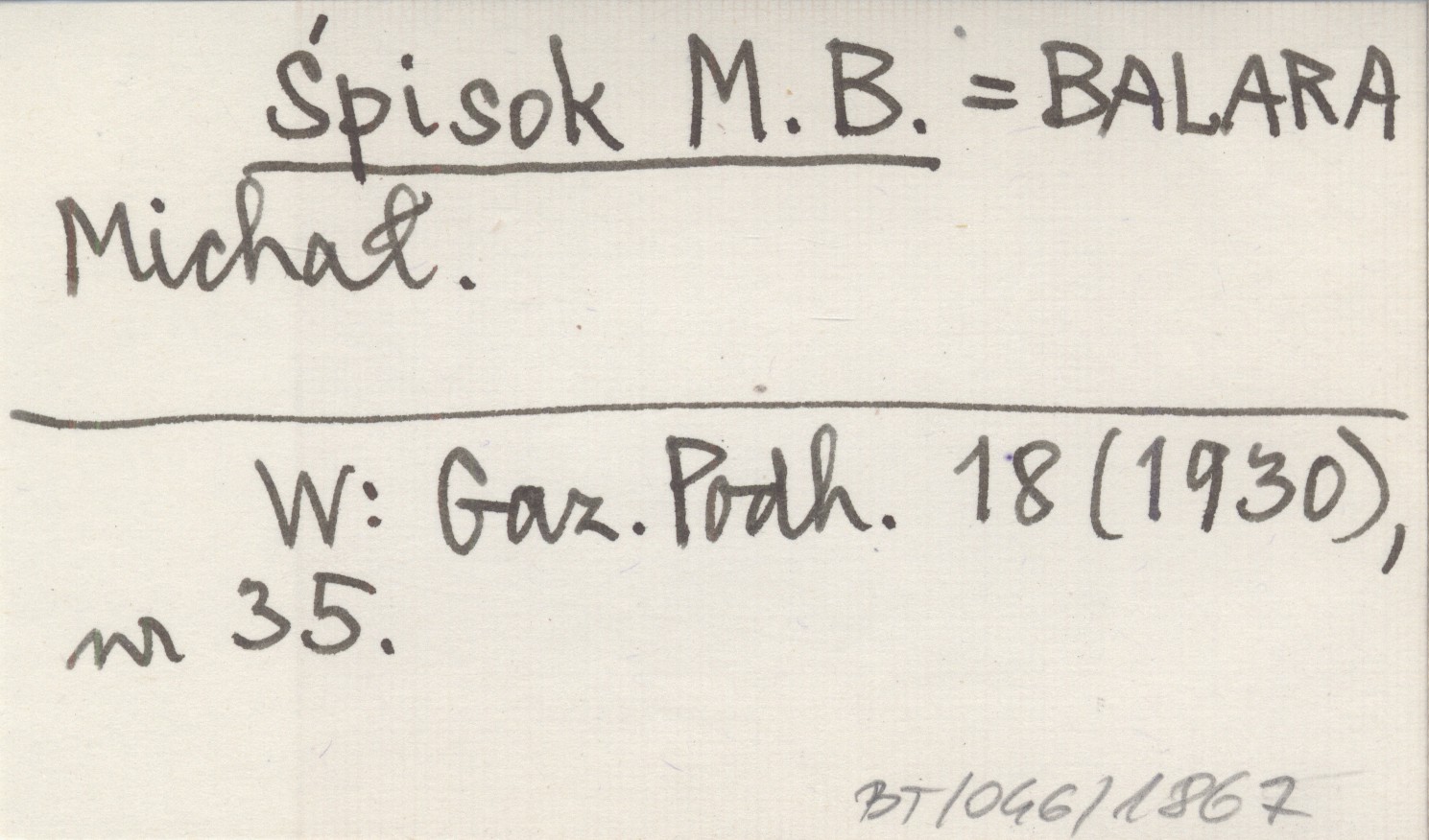 Śpisok M. B. BALARA Michał Gazeta Podhalańska 18 (1930), nr 35.