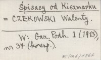 ¦pisacy od Kiezmarku CZEKOWSKI Walenty Gazeta Podhalañska 1 (1913), nr 37 (koresp.).