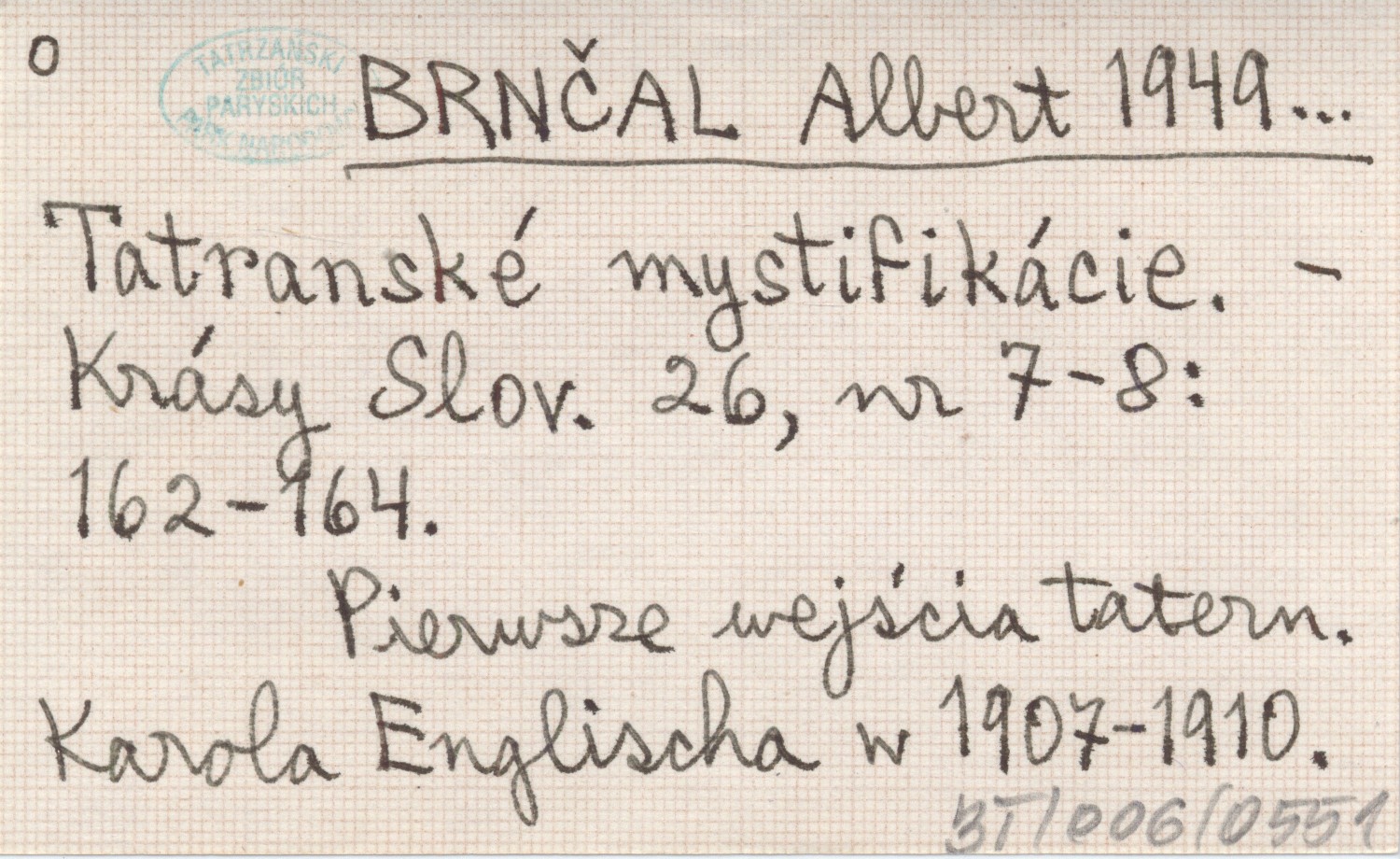 Krásy Slovenska, 26, nr 7-8: 162-164. Pierwsze wejścia taternickie Karola Englischa w 1907-1910.