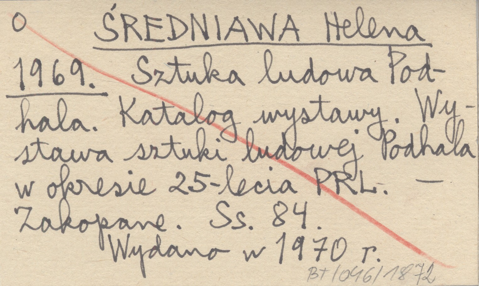 ŚREDNIAWA Helena 1969 Sztuka ludowa Podhala. Katalog wystawy. Wystawa sztuki ludowej Podhala w okresie 25-lecia PRL.