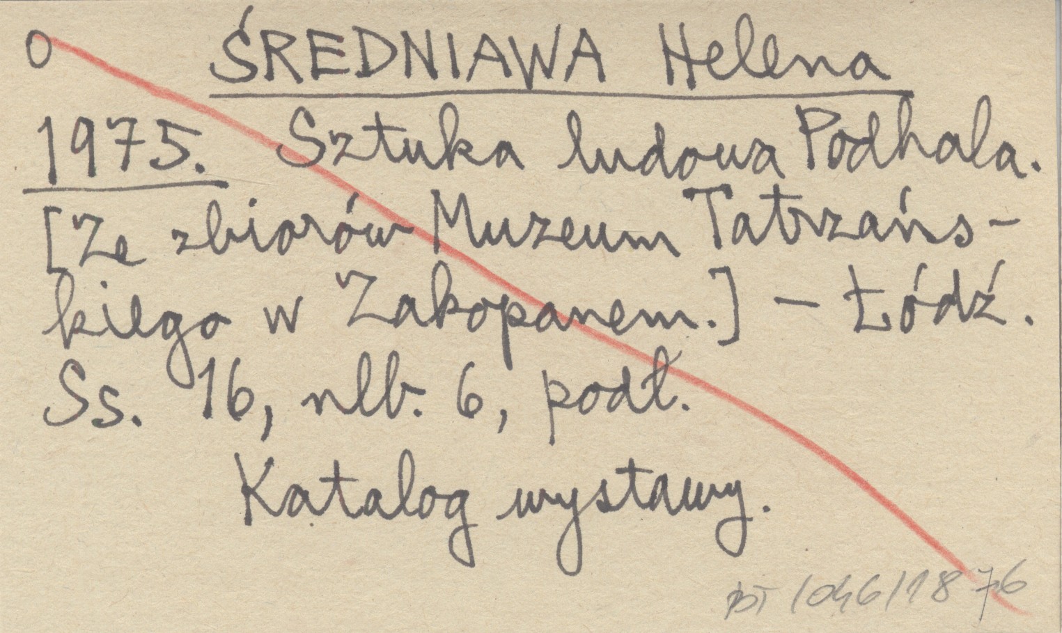 ŚREDNIAWA Helena 1975 Sztuka ludowa Podhala. [Ze zbiorów Muzeum Tatrzańskiego w Zakopanem.]