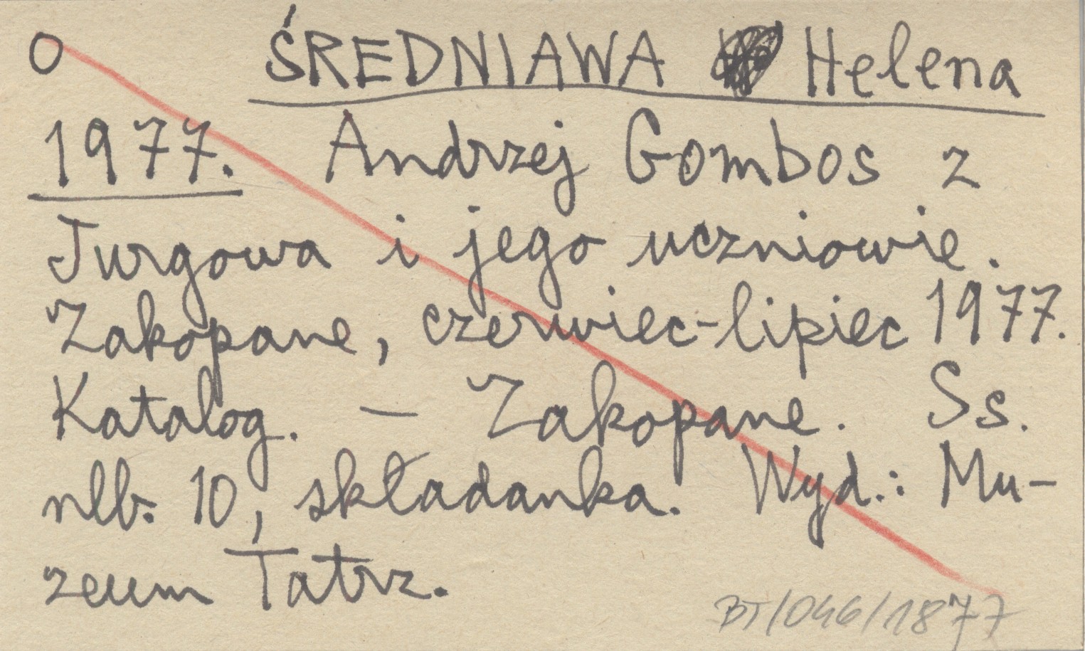 ŚREDNIAWA Helena 1977 Andrzej Gambos z Jurgowa i jego uczniowie. Zakopane, czerwiec-lipiec 1977. Katalog.
