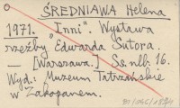 ŚREDNIAWA Helena 1971 "Inni". Wystawa rzeźby Edwarda Sutora.
