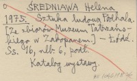 ŚREDNIAWA Helena 1969-1970 Die Volkskunst des Podhale. Ausstellung der Tatramuseums in Zakopane.