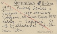 ŚREDNIAWA Helena 1977 Andrzej Gambos z Jurgowa i jego uczniowie. Zakopane, czerwiec-lipiec 1977. Katalog.