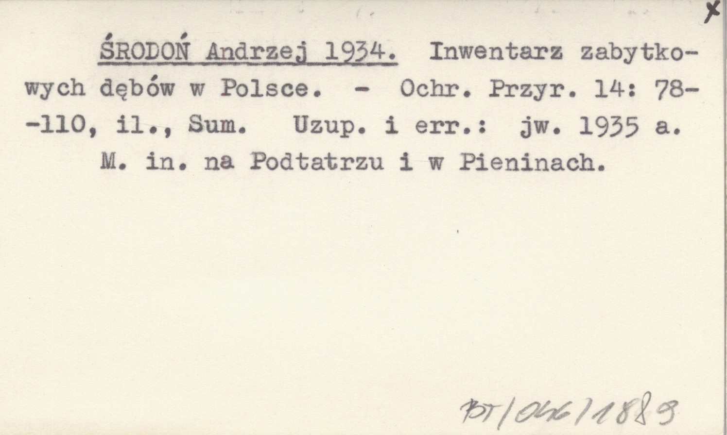 ŚRODOŃ Andrzej 1934 Inwentarz zabytkowych dębów w Polsce.