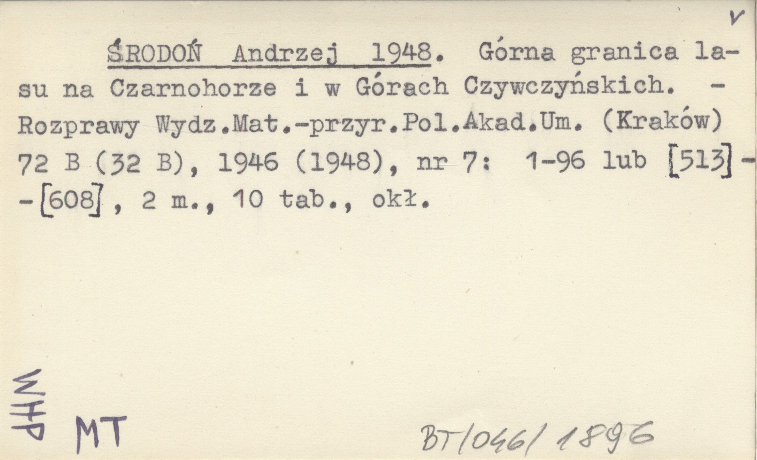 ŚRODOŃ Andrzej 1948 Górna granica lasu na Czarnohorze i w Górach Czywczyńskich.
