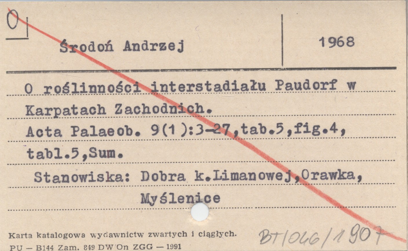 ŚRODOŃ Andrzej 1968 O roślinności interstadiału Paudorf w Karpatach Zachodnich.