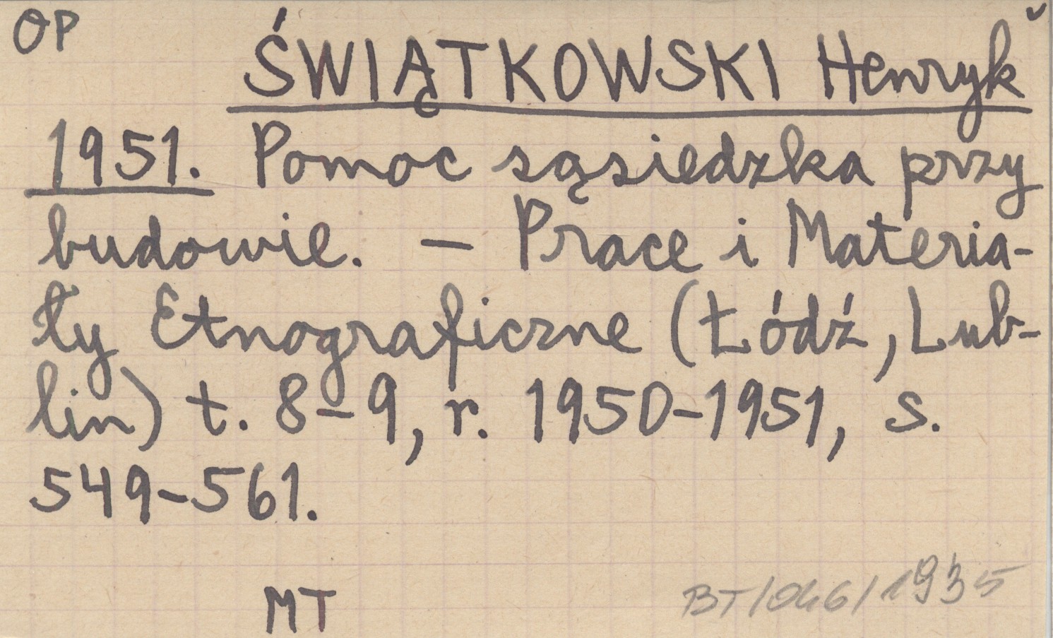 Prace i Materiały Etnograficzne (Łódź ; Lublin ;) , T. 8-9 (1950-1951): 549-561.