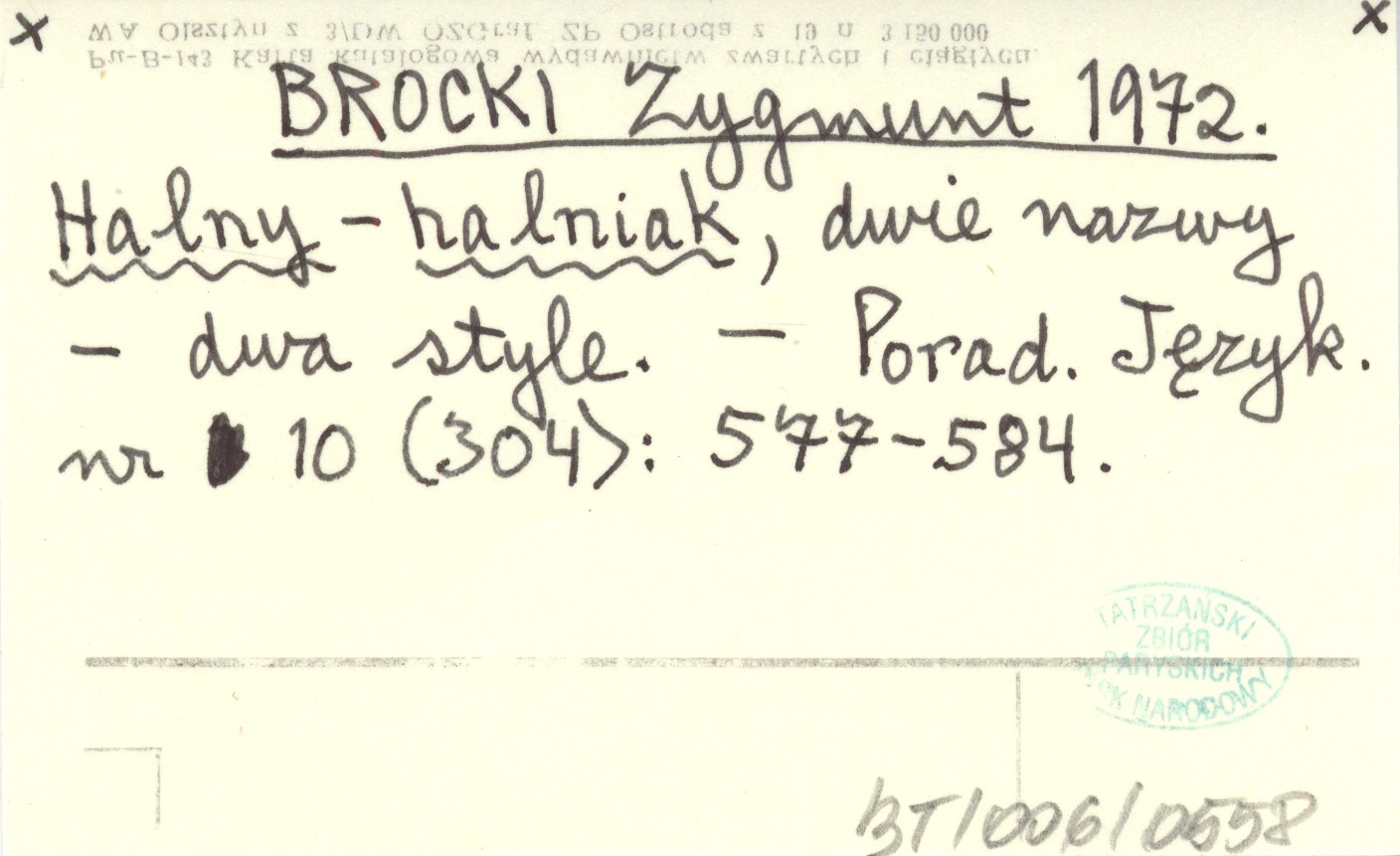 BROCKI Zygmunt 1972 Halny - halniak, dwie nazwy - dwa style.
