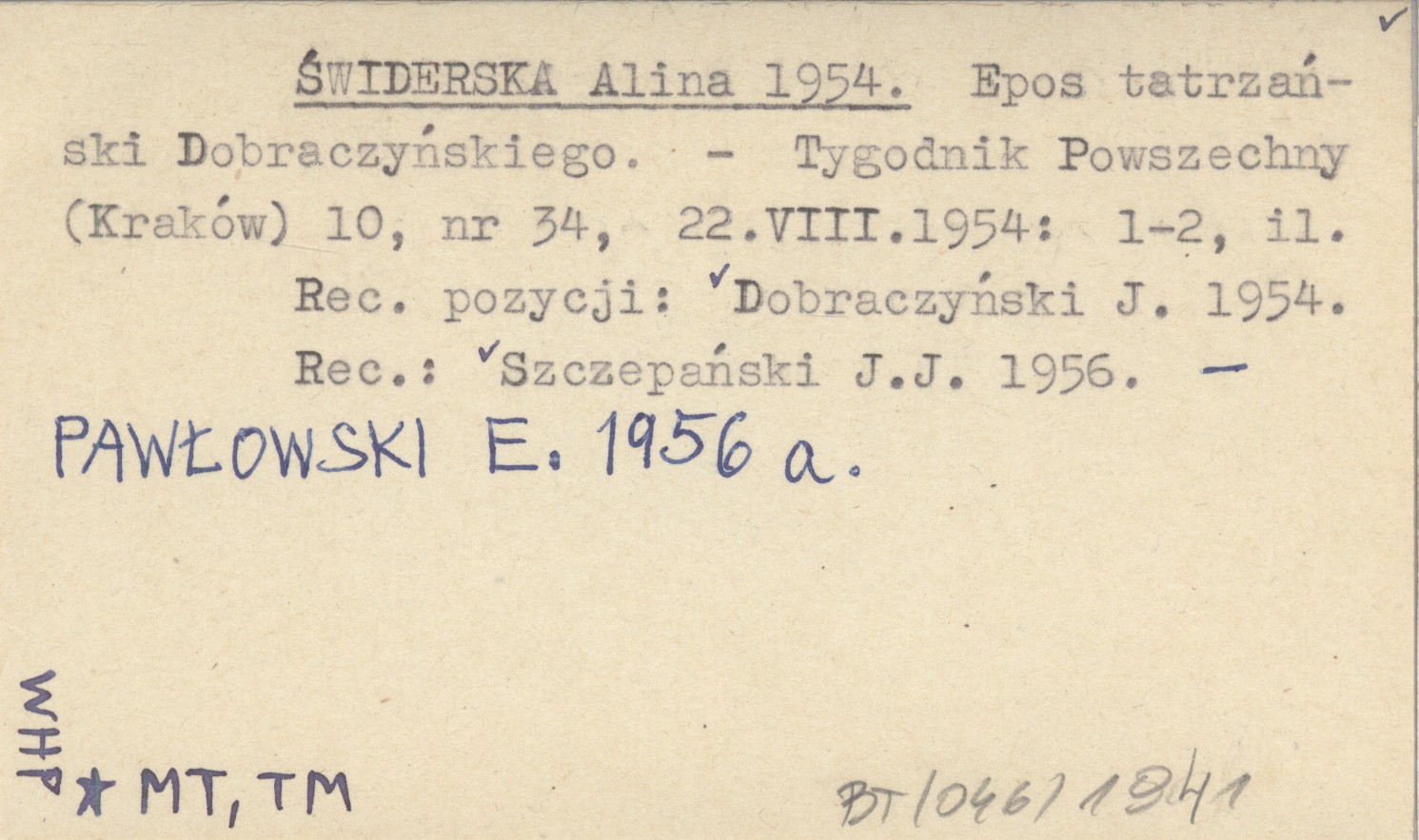 Tygodnik Powszechny (Kraków) , 10, nr 34 (22 VIII 1954): 1-2, il. Recenzja pozycji: DOBRACZYŃSKI J. 1954. REC: SZCZEPAŃSKI J. J. 1956 ; PAWŁOWSKI E. 1956 a ;