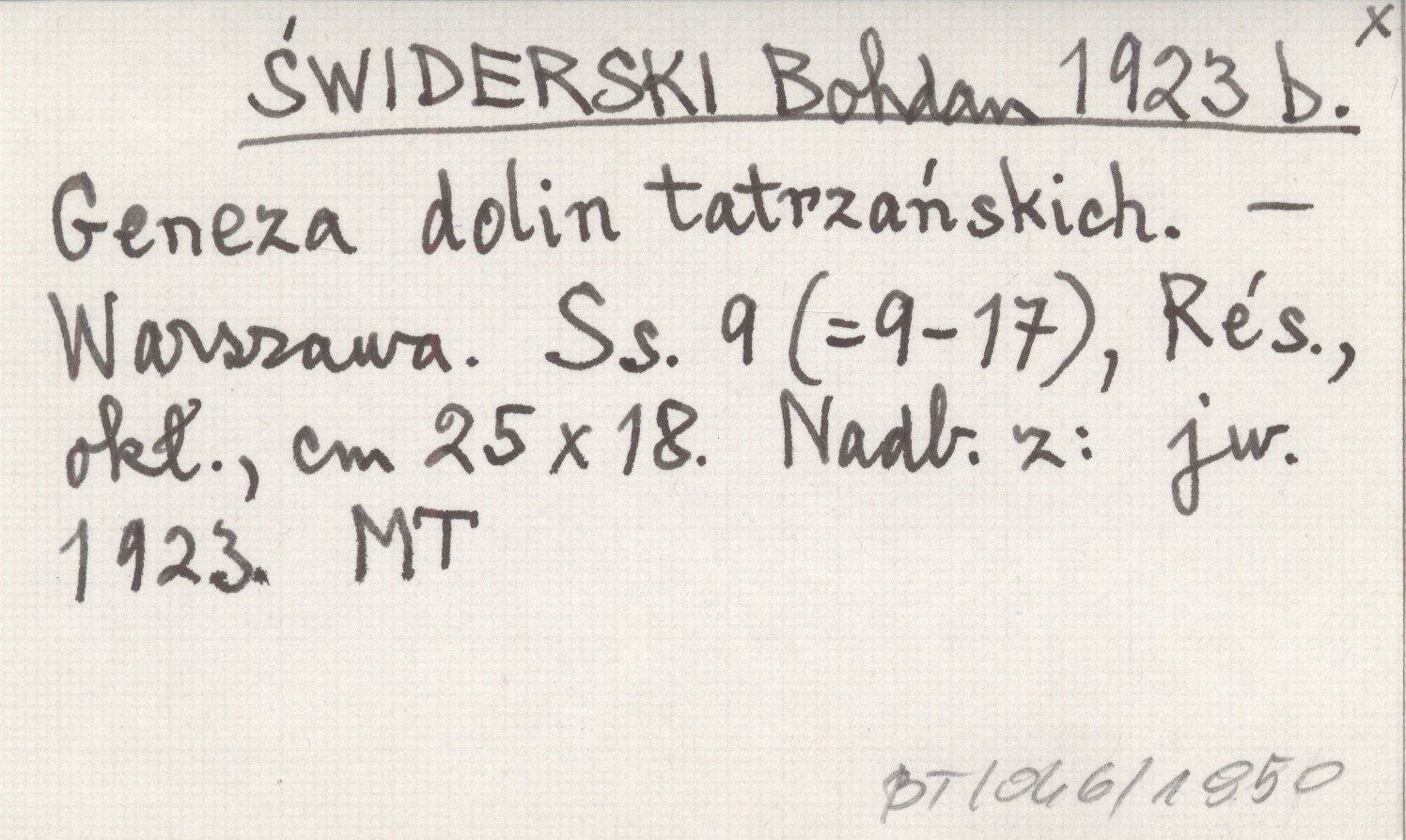 ŚWIDERSKI Bohdan 1923 b Geneza dolin tatrzańskich.
