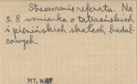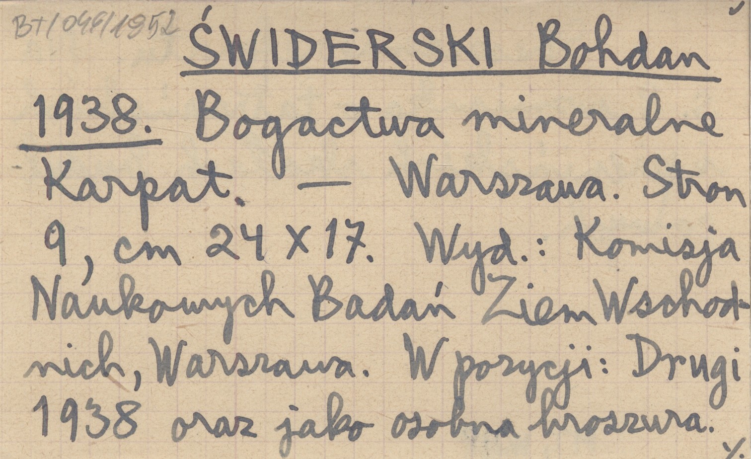 Drugi 1938 Komisja Naukowych Badań Ziem Wschodnich, Warszawa , 9 s., 24x17 cm. S. 8 wzmianka o tatrzańskich i pienińskich skałach budulcowych. Również jako osobna broszura. Streszczenie referatu.