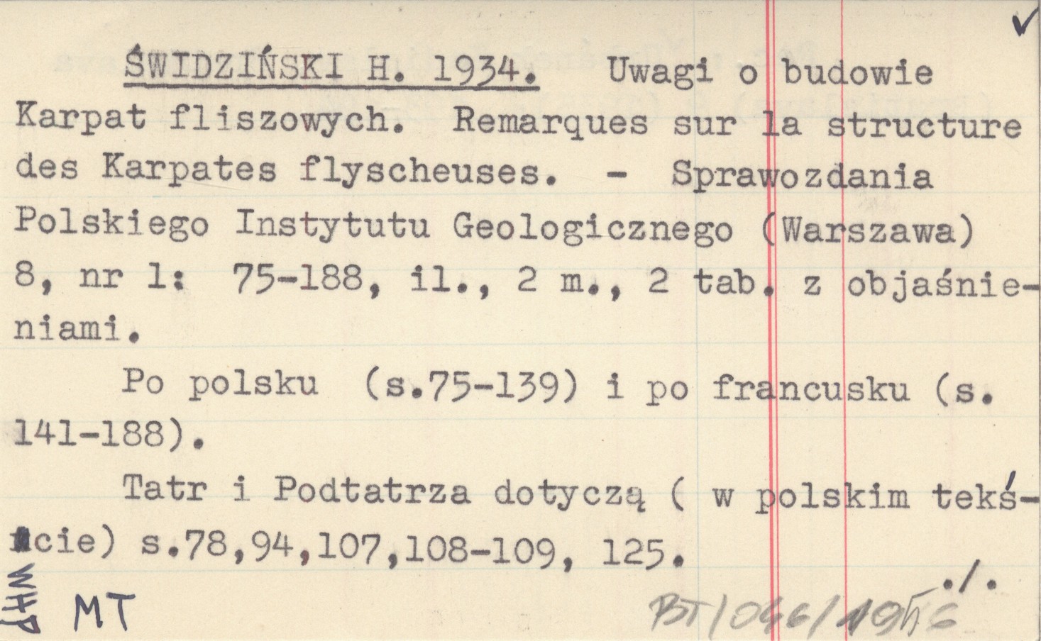 ŚWIDZIŃSKI H. 1934 Uwagi o budowie Karpat fliszowych. Remarques sur la structure des Karpates flyscheuses.