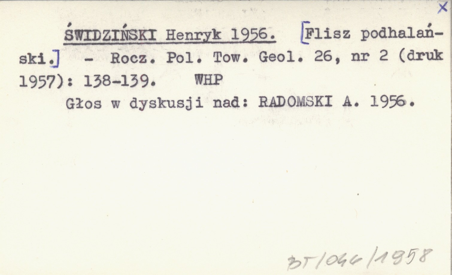 Rocznik Polskiego Towarzystwa Geologicznego, 26, nr 2 (druk 1957): 138-139. Głos w dyskusji nad: RADOMSKI A. 1956.