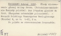 ŚWIDERSKI Bohdan 1932 Ślady zlodowacenia górnej doliny Prutu. (Południowo-wschodnie Karpaty polskie). Sur l'ancien glacier du Prut. (Karpates orientales polonaises).