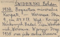 ŚWIDERSKI Bohdan 1938 Bogactwa mineralne Karpat.