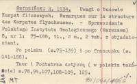 ŚWIDZIŃSKI H. 1934 Uwagi o budowie Karpat fliszowych. Remarques sur la structure des Karpates flyscheuses.