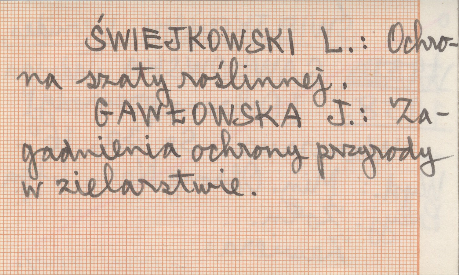 Wydawnictwo Ministerstwa Obrony Narodowej, Liga Przyjaciół Żołnierzy, Warszawa , 32 s., 16°. Zawiera: ŚWIEJKOWSKI L.: Ochrona szaty roślinnej. GAWŁOWSKA J.: Zagadnienia ochrony przyrody w zielarstwie.