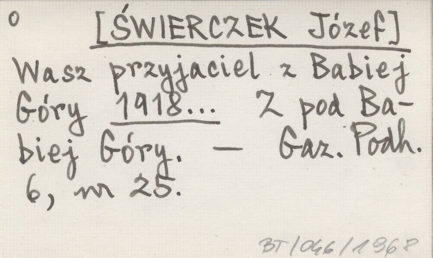 Wasz przyjaciel z Babiej Góry [ŚWIERCZEK Józef] 1918... Z pod Babiej Góry.