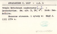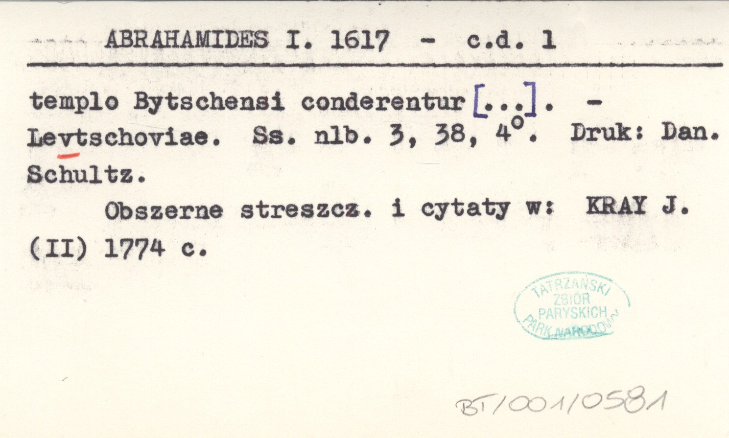 Levtschoviae , [3], 38 s., 4°. Obszerne streszcz. i cytaty w: KRAY J. (II) 1774 c. Druk: Dan. Schultz.