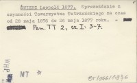 L. ¦. [¦WIERZ Leopold] 1878 Wyci±g z protokó³u IV Walnego Zgromadzenia Towarzystwa Tatrzañskiego odbytego d. 27go maja 1877 roku w Krakowskiem Muzeum Techniczno-Przemys³owem.