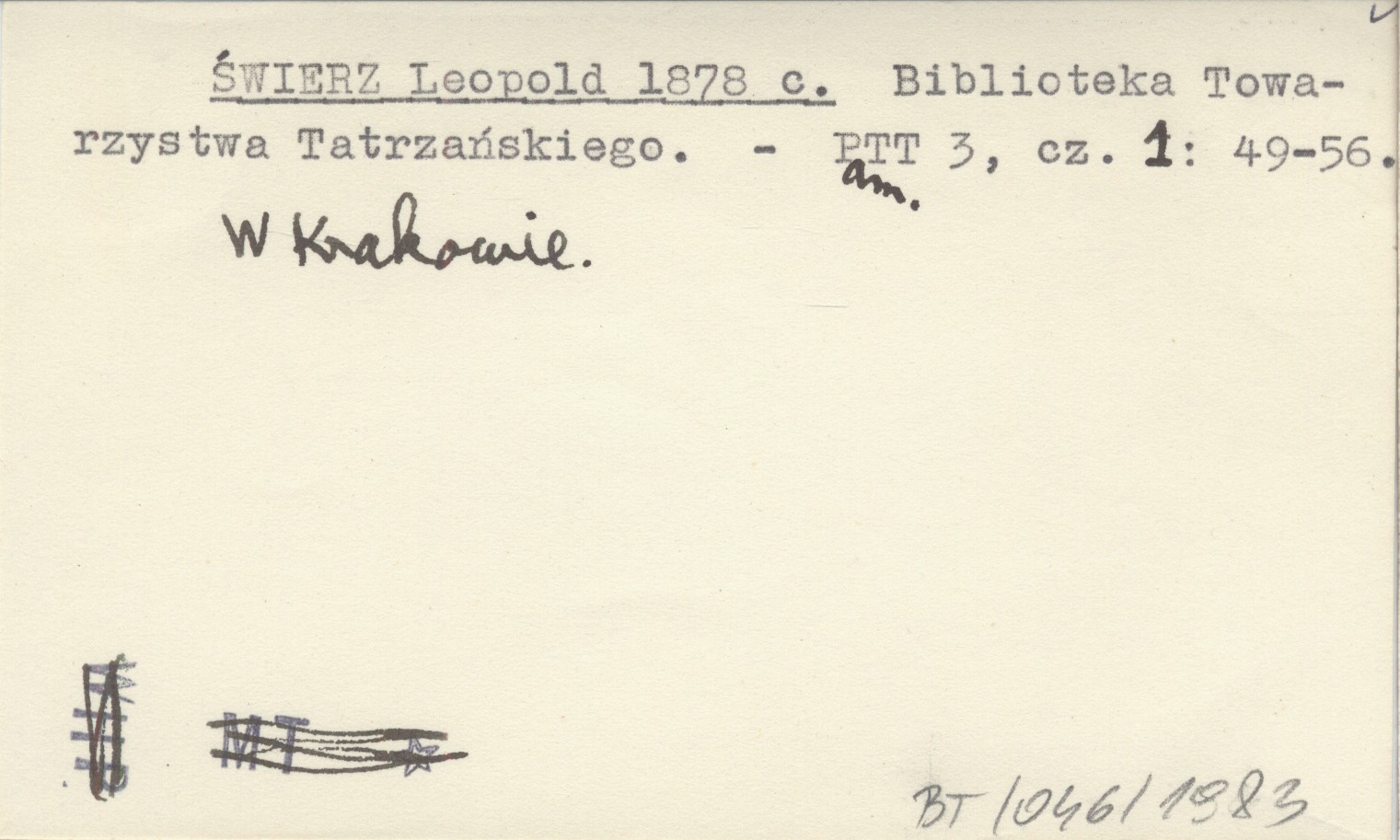 ŚWIERZ Leopold 1878 c Biblioteka Towarzystwa Tatrzańskiego.