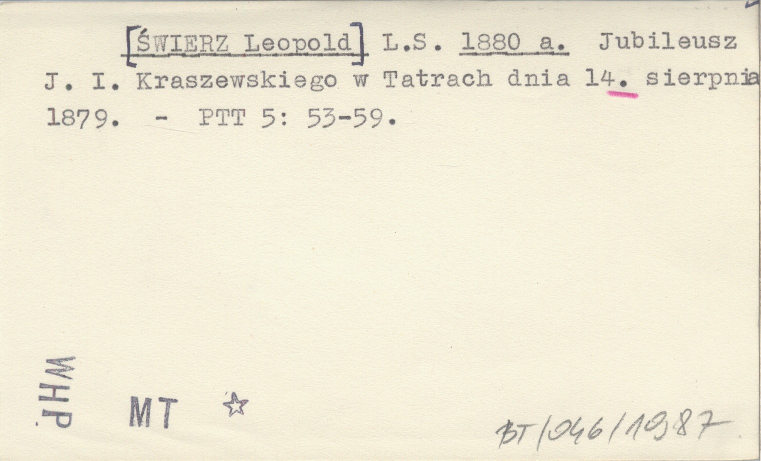 L. S. [ŚWIERZ Leopold] 1880 a Jubileusz J. I. Kraszewskiego w Tatrach dnia 14. sierpnia 1879.