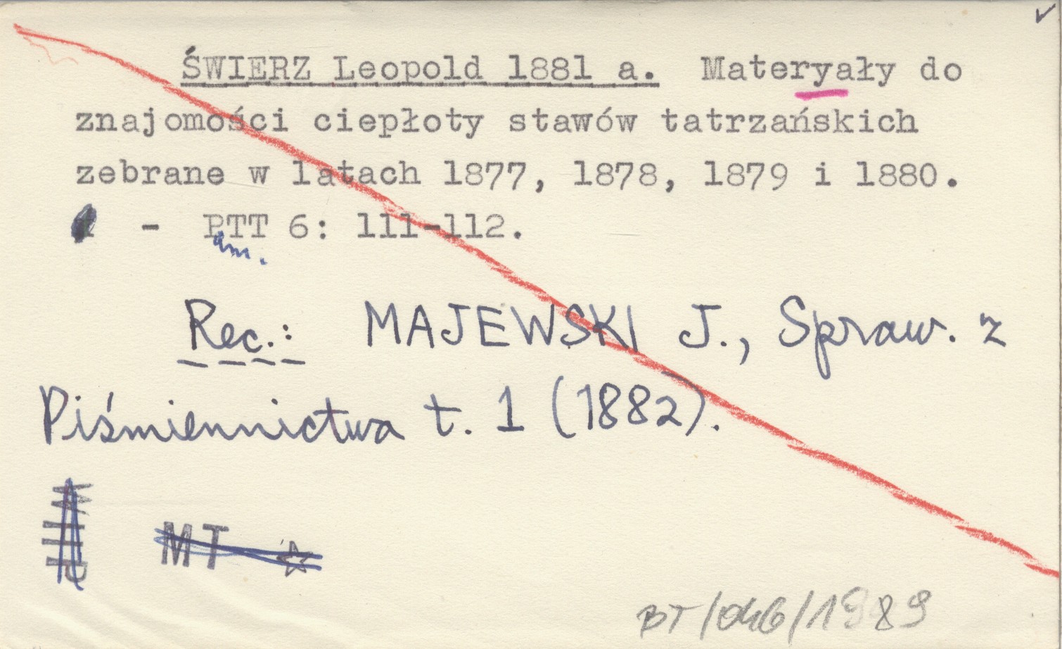 Pamiętnik Towarzystwa Tatrzańskiego, 6: 111-112. REC: MAJEWSKI J., Sprawozdanie z Piśmiennictwa t. 1 (1882)