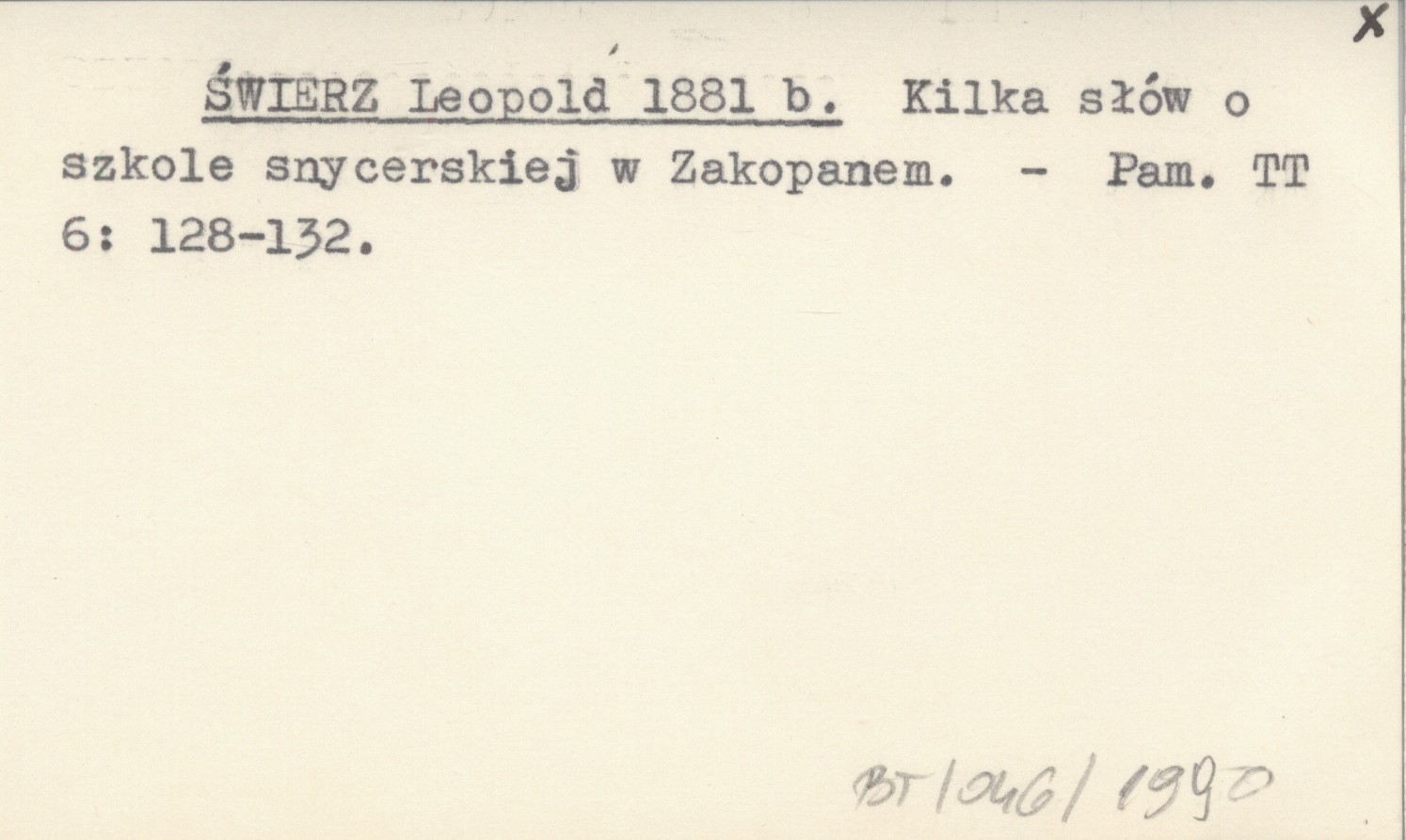 ŚWIERZ Leopold 1881 b Kilka słów o szkole snycerskiej w Zakopanem.