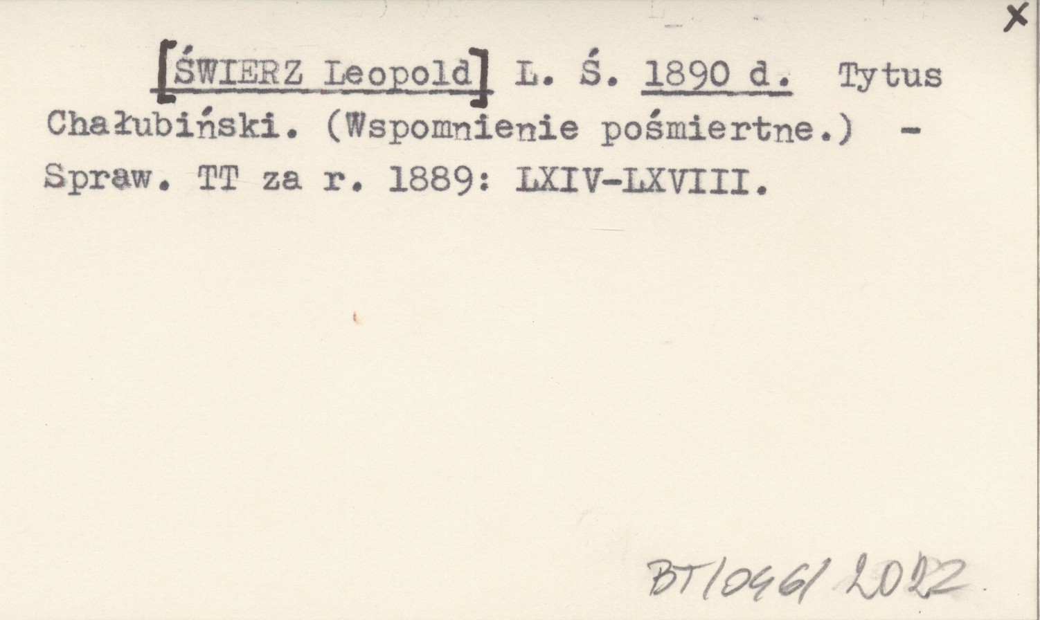 L. Ś. [ŚWIERZ Leopold] 1890 d Tytus Chałubiński. (Wspomnienie pośmiertne).