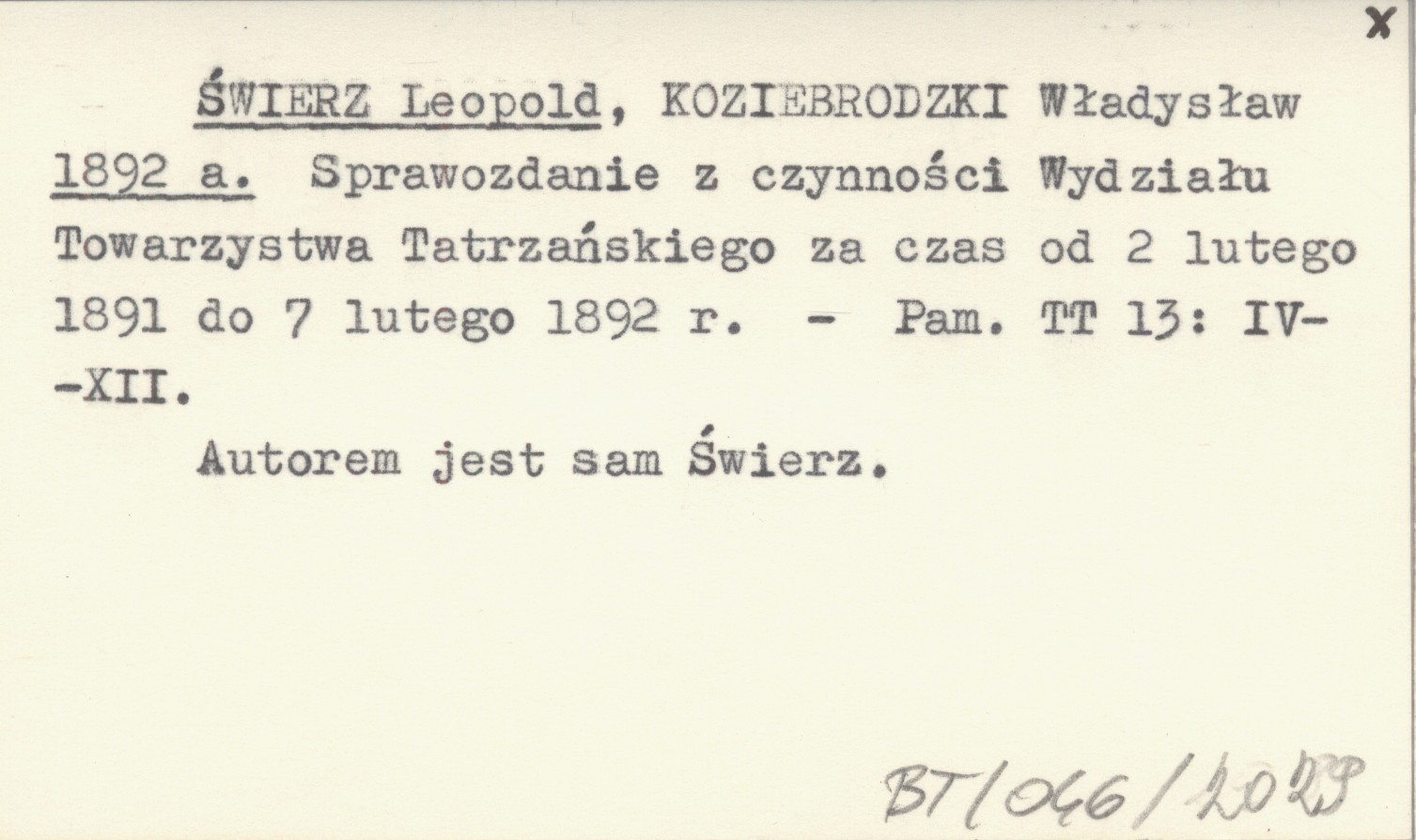 Pamiętnik Towarzystwa Tatrzańskiego, 13: IV-XII. Autorem jest sam Świerz.