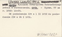 [ŚWIERZ Leopold] 1891 d Obrady Wydziału Towarzystwa Tatrzańskiego podane w streszczeniu.