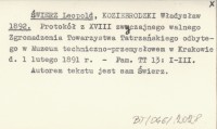 ŚWIERZ Leopold KOZIEBRODZKI, Władysław. ; 1892 Protokół z XVIII zwyczajnego walnego Zgromadzenia Towarzystwa Tatrzańskiego odbytego w Muzeum techniczno-przemysłowego w Krakowie d. 1 lutego 1891 r.