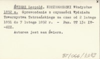 ŚWIERZ Leopold KOZIEBRODZKI, Władysław. ; 1892 a Sprawozdanie z czynności Wydziału Towarzystwa Tatrzańskiego za czas od 2 lutego 1891 do 7 lutego 1892 r.