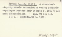 ŚWIERZ Leopold 1893 b O stosunkach ciepłoty stawów tatrzańskich według pomiarów czynionych podczas pory letniej r. 1892 w różnych głębokościach.