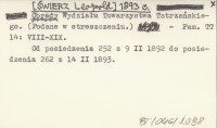 [ŚWIERZ Leopold] 1893 c Obrady Wydziału Towarzystwa Tatrzańskiego. (Podane w streszczeniu).