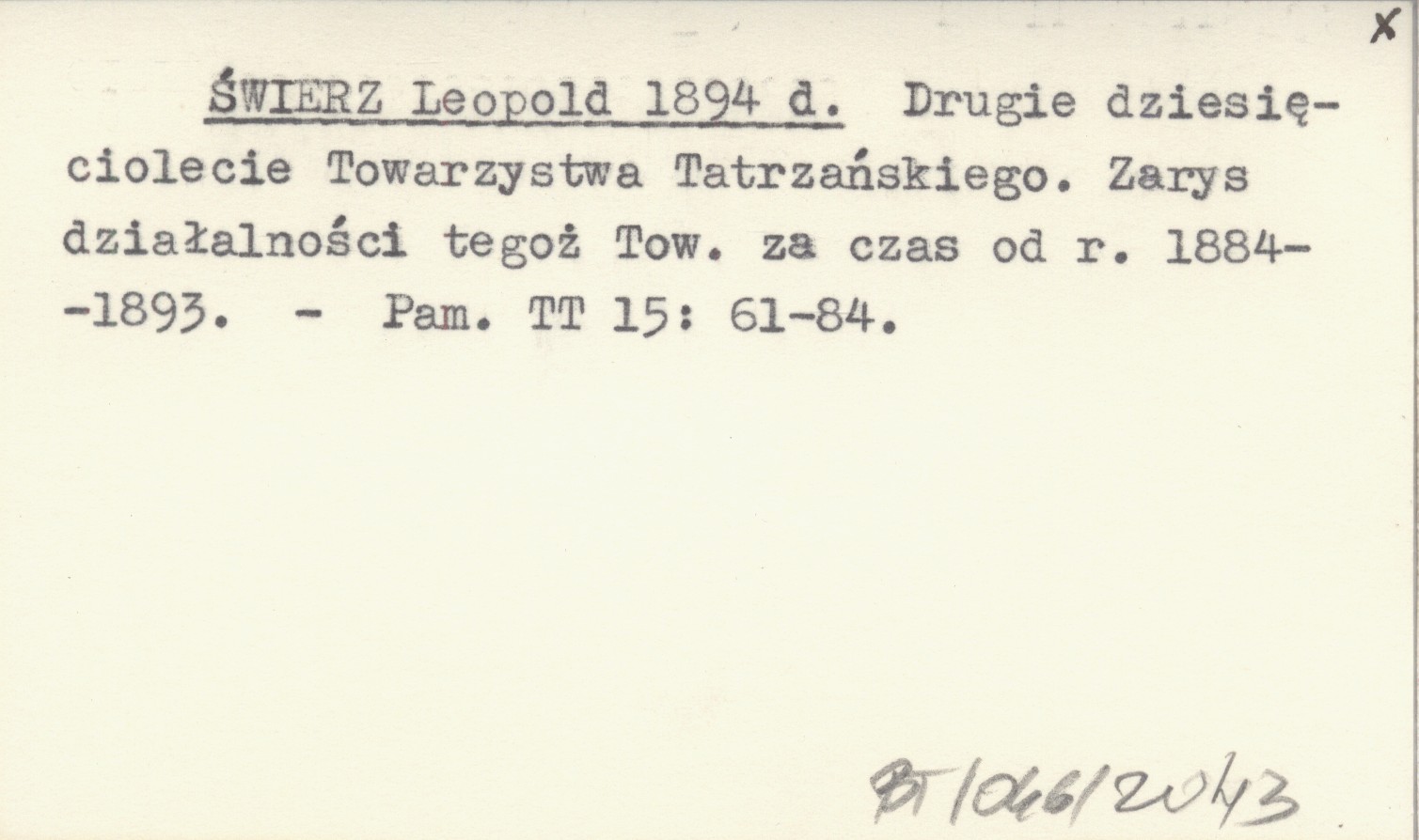 ŚWIERZ Leopold 1894 d Drugie dziesięciolecie Towarzystwa Tatrzańskiego. Zarys działalności tegoż Tow. za czas od r. 1884-1893.