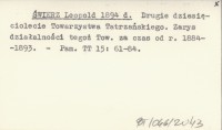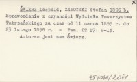ŚWIERZ Leopold ZAMOYSKI, Stefan. ; 1896 b Sprawozdanie z czynności Wydziału Towarzystwa Tatrzańskiego za czas od 11 marca 1895 r. do 23 lutego 1896 r.