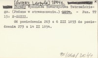 [ŚWIERZ Leopold] 1894 e Obrady Wydziału Towarzystwa Tatrzańskiego. (Podane w streszczeniu).